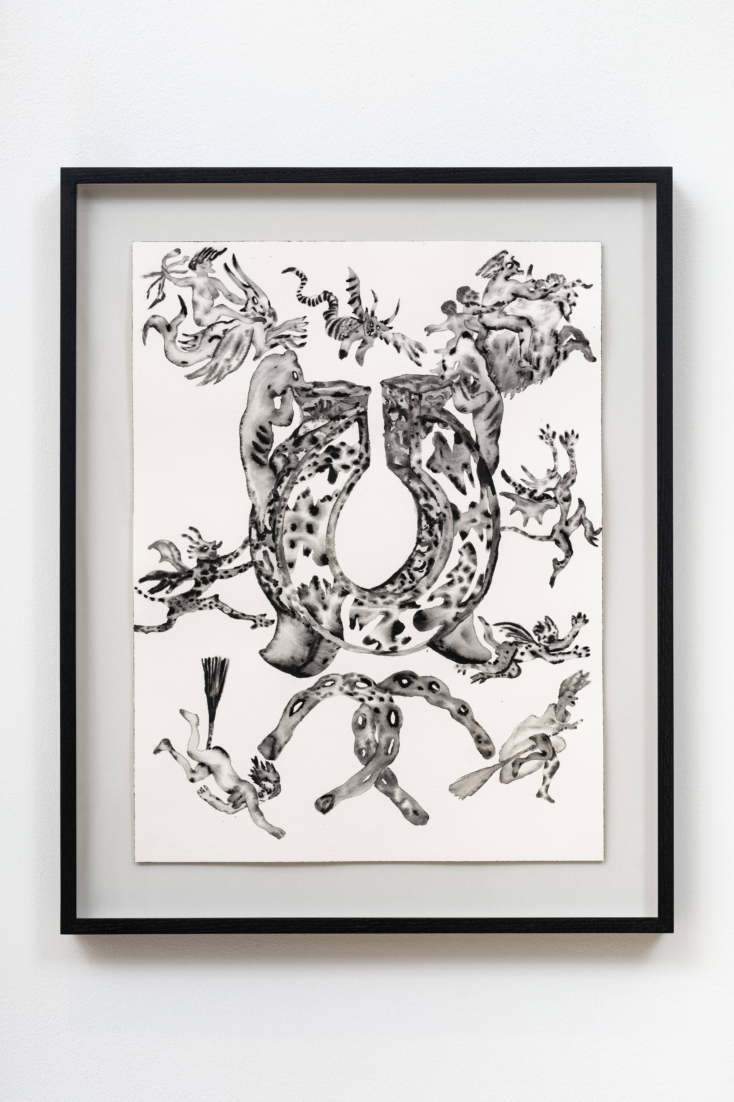 Spending his formative years in the two cities, Wielebinski explores their personal relationship to the places that shaped his identity and personhood. The title and concept for the show is drawn from how the cities came to be – through the mining of oil in Texas and the syphoning of water from the valleys in California. Characteristic of Wielebinski’s multifaceted practice, Oil and Water exhibits works across a range of mediums, which rethink and expand on the totemic potential of iconographies. They explore the symbolism of horses as a starting point – often seen as representative of machismo, cowboys, the possibilities of “going west,” and rugged individualism in the white American imagination. Here, Wielebinski creates rocking horses, which serve to undermine these tropes by presenting them as childlike, impotent, with a repetitive function that complicates these narratives by speaking to our obsession with dominating nature, the mundanity and everyday cruelty of American life, and the impulse to repeat the same histories over again. Oil and Water highlights the contradictory nature of symbolism and invites us to question repeating histories by presenting possibilities for a new reality through acknowledgment of our past.